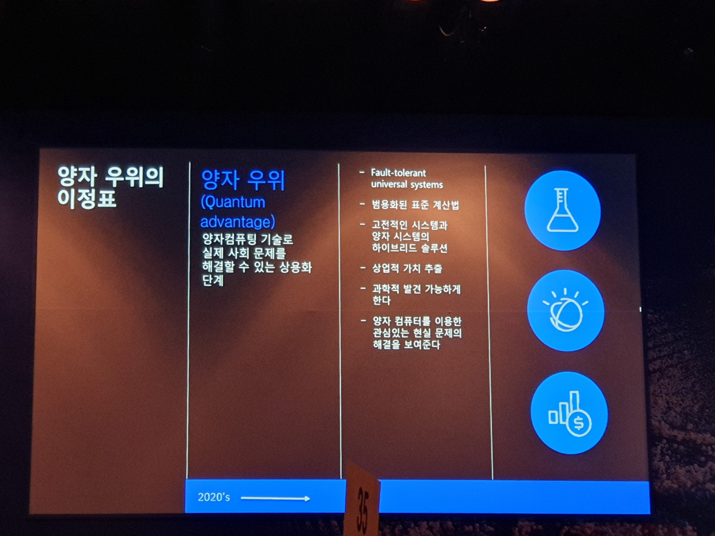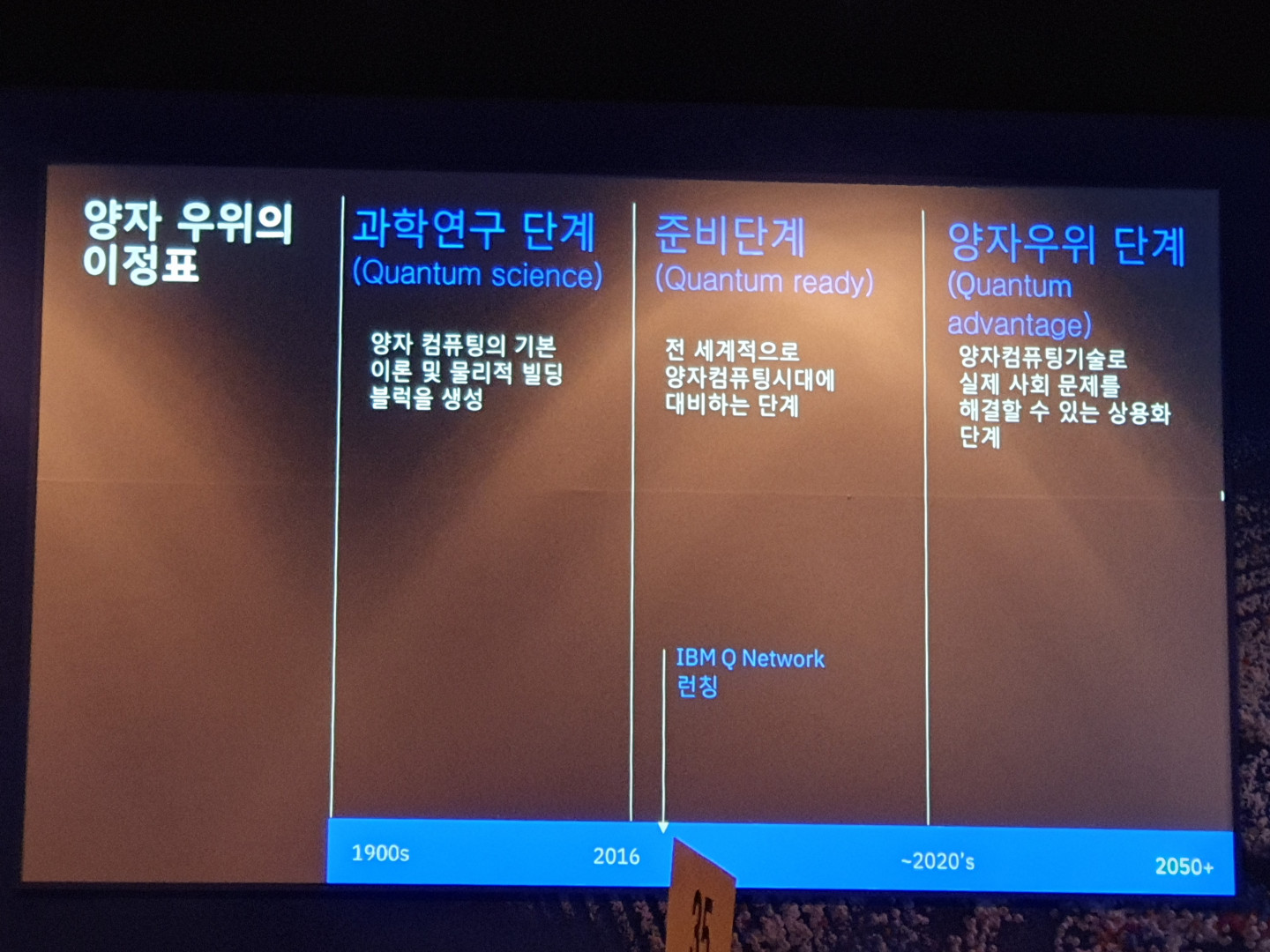IBM은 이미 Q Network를 런칭하여 상용화하고 있으며 일반 연구자에게도 무료로 공개하고 있습니다. 그것이 2016년 부근입니다. 그리고 2020년에는 이제 양자 우위 단계에 접어들어 완전히 상용화가 가능할 것으로 내다보고 있었습니다.