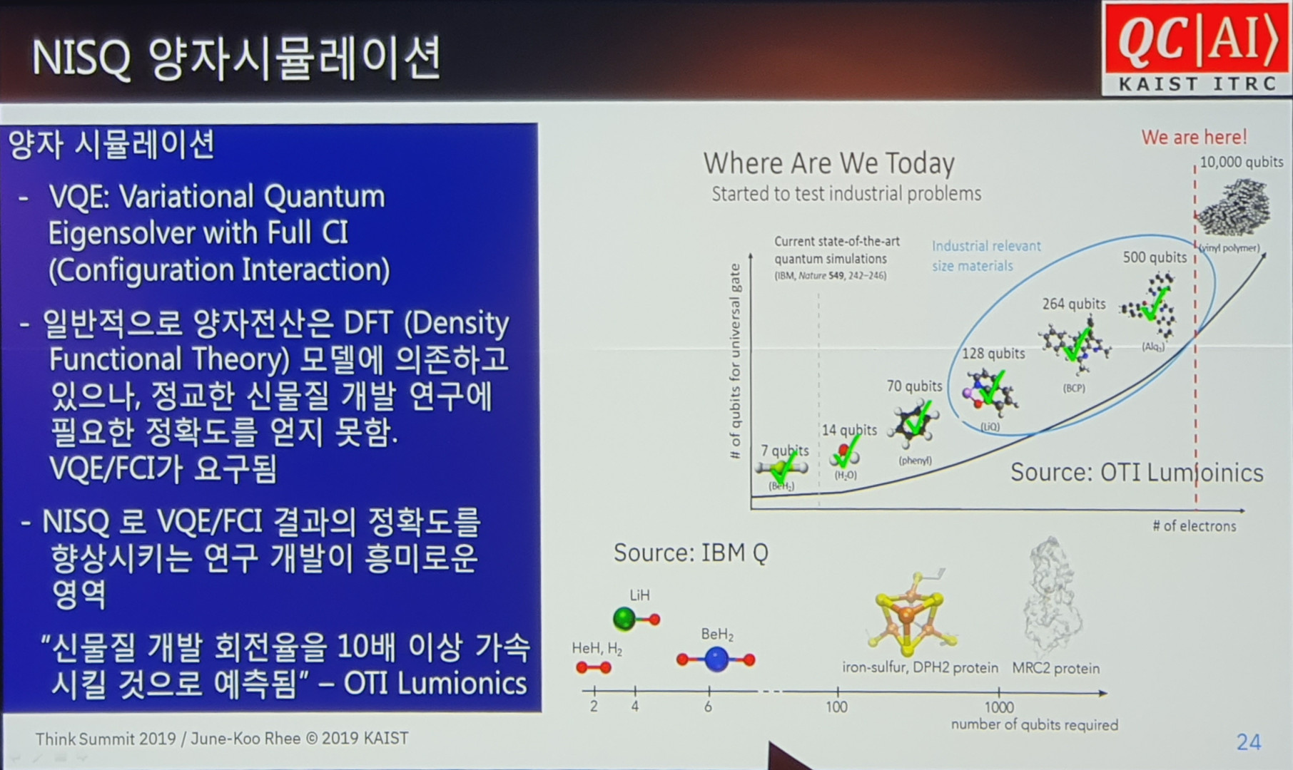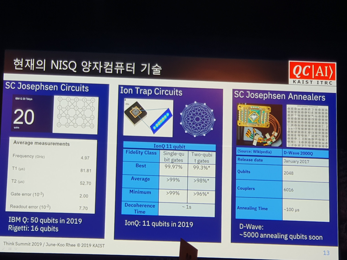 좀 더 자세히 보면 큐비트의 확장성을 쉽게 파악할 수 있습니다. 이렇게 놀라운 양자 시스템은 어느정도로 발전해있을까요? 저는 아직 한참 멀었다고 생각했는데 다음 슬라이드를 보고 놀라지 않을 수 없었습니다.