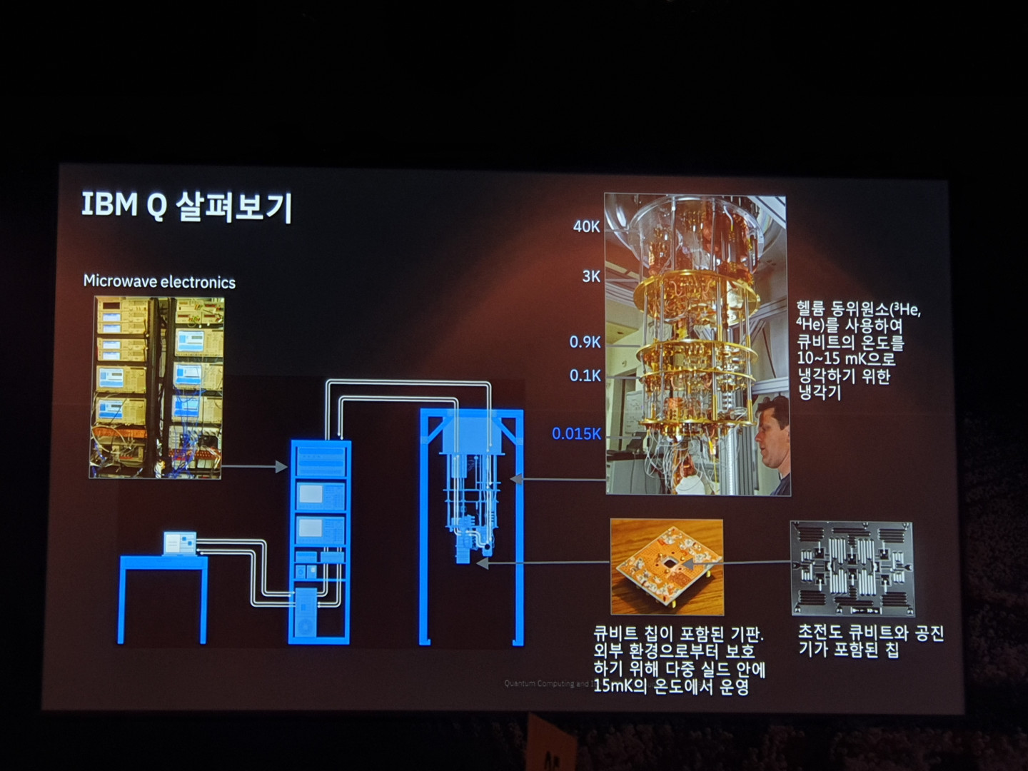이번 포럼의 최대 관심사이자 하이라이트 부분이 아닐까합니다. 이번 세션은 IBM Research Vice President인 Robert S. Sutor가 맡았습니다. 바로 양자시스템에 대한 내용인데요, 이 파트 역시도 IBM의 발표과 KAIST 이준구 교수의 발표 두 부분으로 나뉘게 됩니다. 여기에서는 두 발표를 통합하여 정리해보도록 하겠습니다.