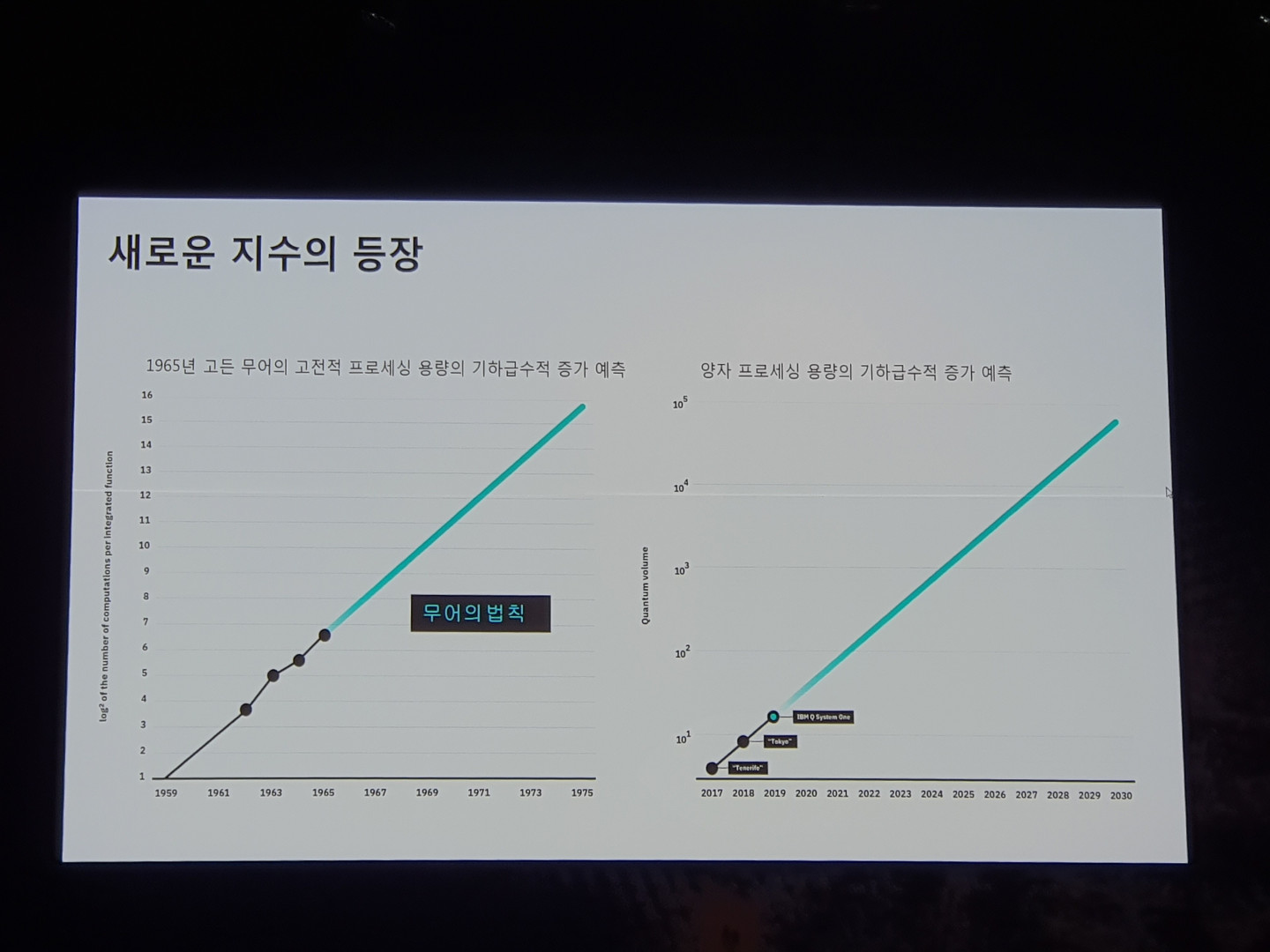 이런 흐름으로 인해 Binary System에서 통용되던 무어의 법칙이 이제는 Quantum Processing 법칙으로 변모하고 있습니다. 그래프는 비슷해보이는데 Y축의 단위가 완전히 달라진 것을 볼 수 있습니다.