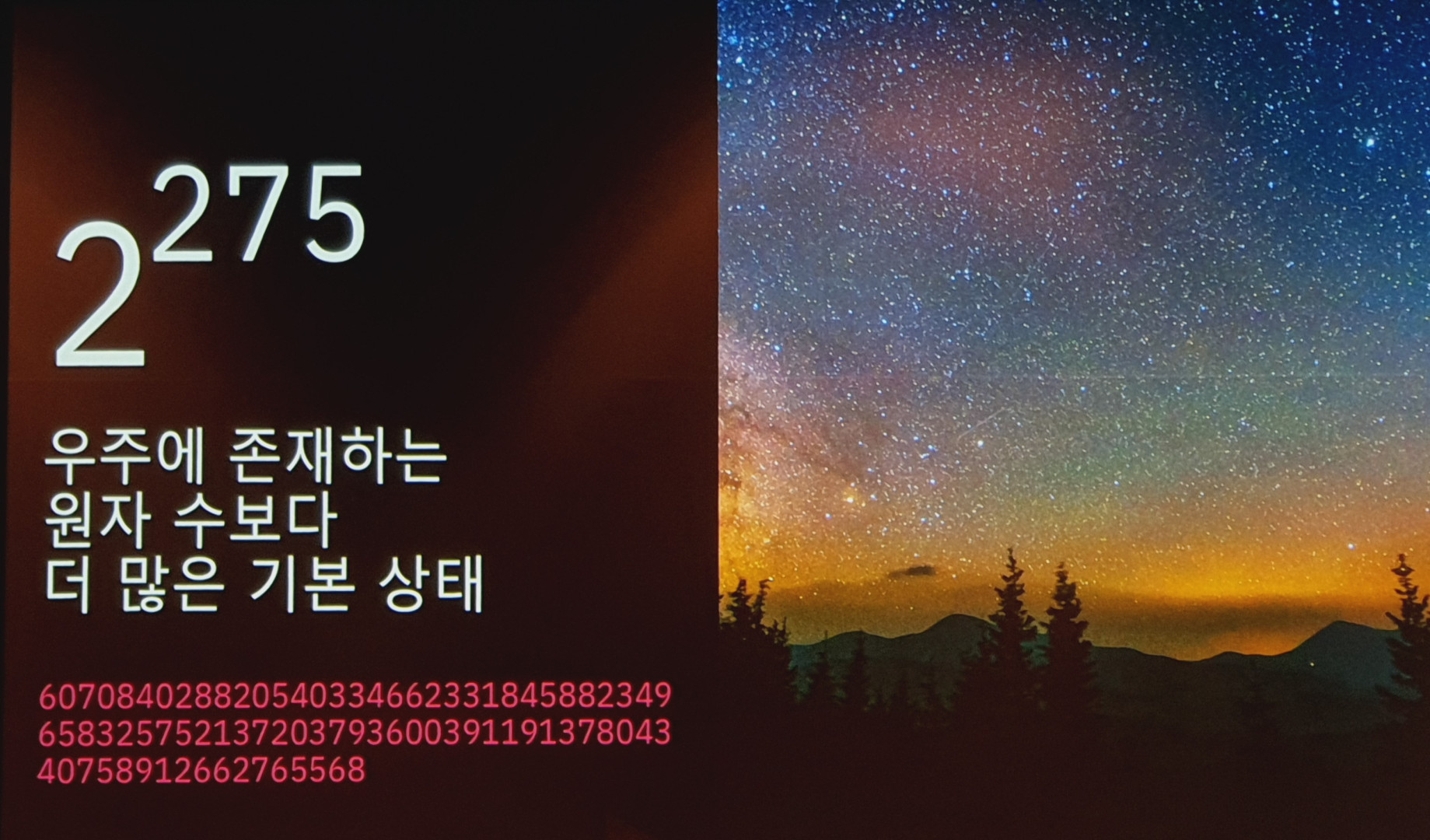 큐비트가 275개만 되어도 우주에 존재하는 원자 수보다 더 많은 기본 상태를 갖게 됩니다. 양자 시스템에서 큐비트를 중첩할 수록 상상할 수 없는 양의 정보를 담을 수 있게 되는 것이지요. 거의 "천지개벽" 수준이라고 볼 수 있습니다.
