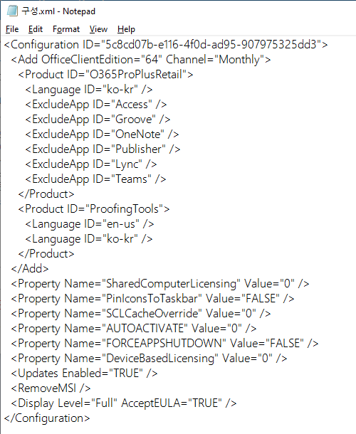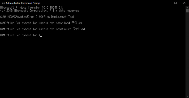 setup.exe /configure 구성.xml