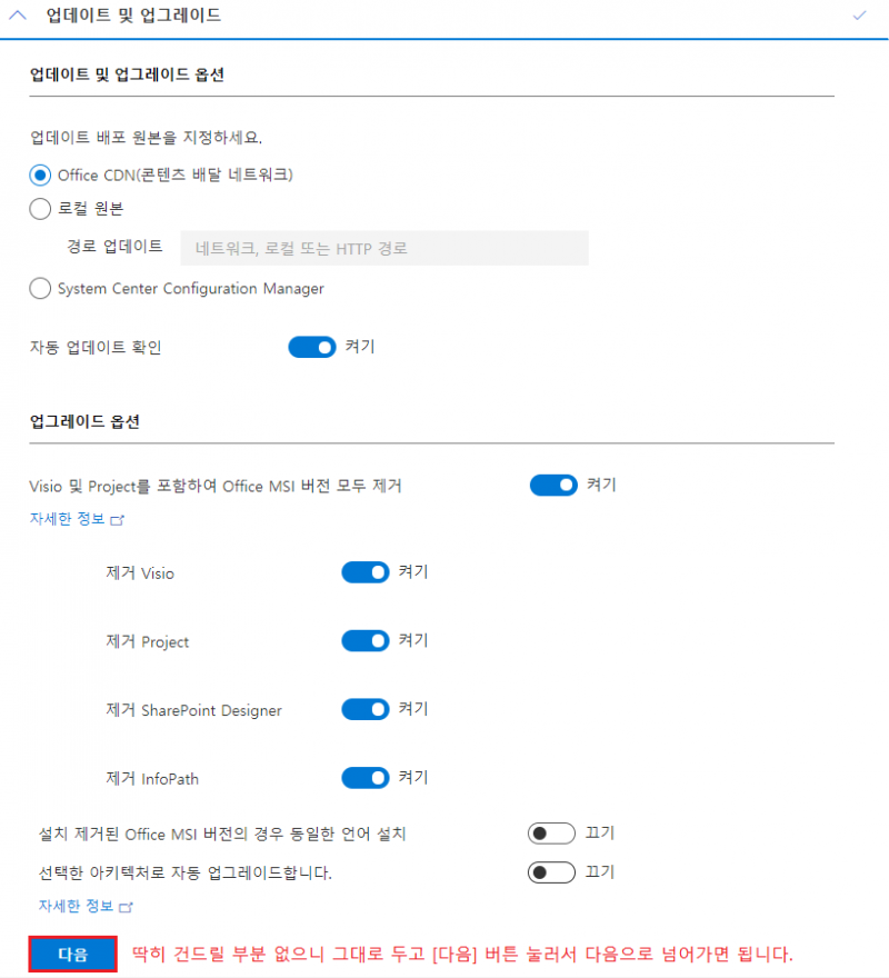 업데이트 및 업그레이드 부분도 그대로 두면 됩니다.