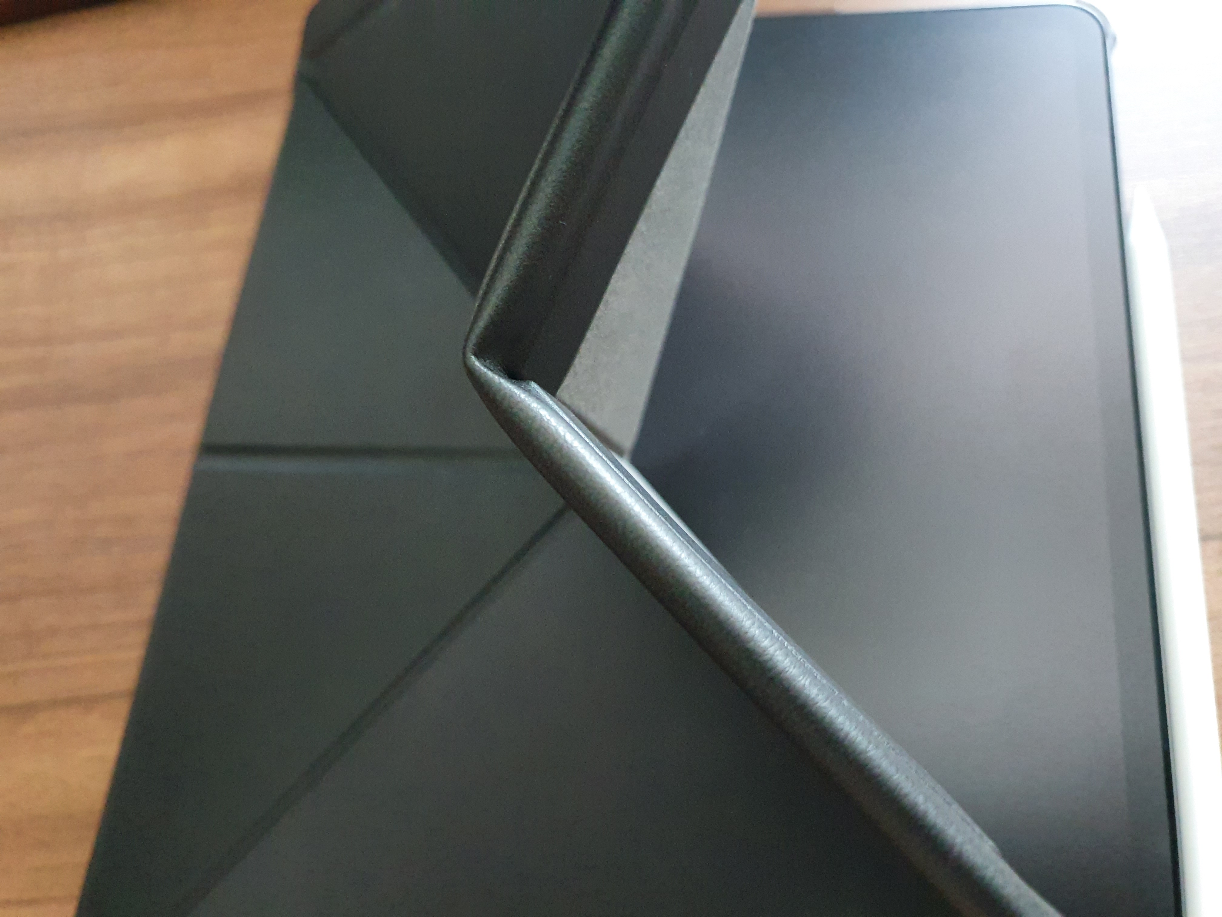 플라스틱 케이스의 무게 절감 때문인지 모르겠는데 너무 약합니다. 기존 아이패드 프로 1세대 12.9인치용 모쉬 버사 케이스는 플라스틱 부분이 단단하여서 휨현상을 방지해줄 수 있었다고 생각하는데 이건 좀 심하지 않나 싶습니다.