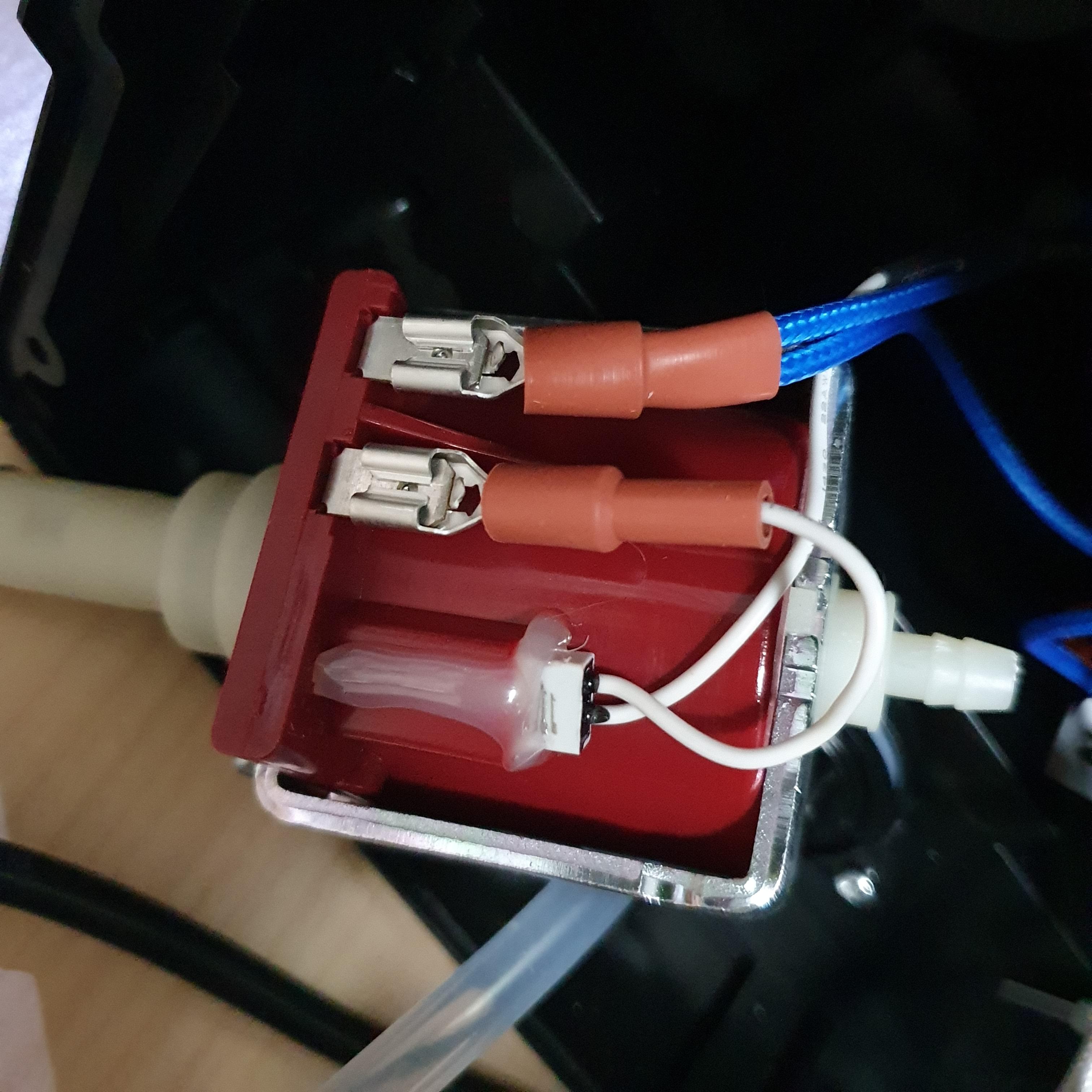 펌프에 연결된 선은 사진을 참고해주세요. 글루건으로 붙인건 손으로 떼어내면 그냥 떨어집니다. 다시 글루건 붙일 필요 없이 잘 빠지고 잘 끼워져 고정됩니다.