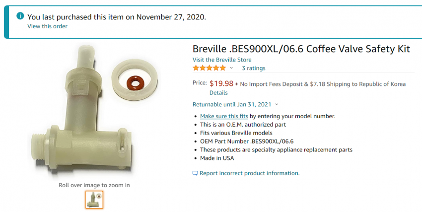 CRM3605는 갈색 오링이 2개씩 들어가는 반면 브레빌 OPV는 오링 1개밖에 안들어가서 조금 불안하긴 합니다 ㅋㅋ