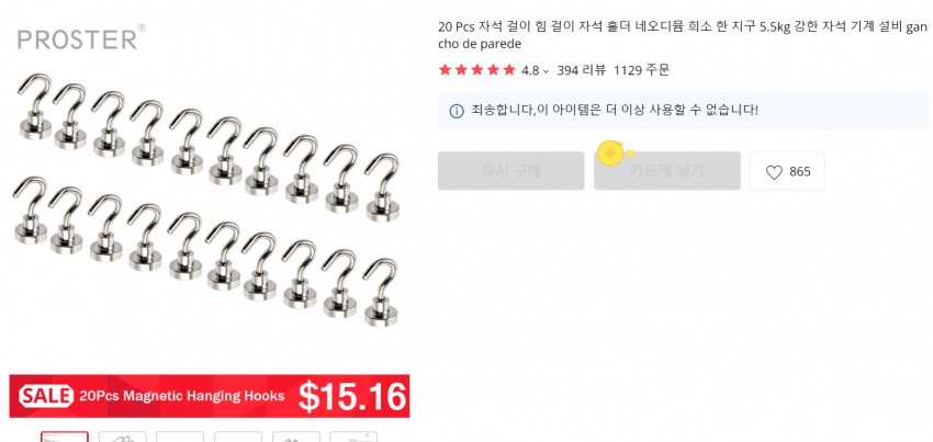 이거 말고 N52 등급의 후크달린게 있는데 이건 현재 품절이라 좀 아쉬움. https://ko.aliexpress.com/item/32910939536.html